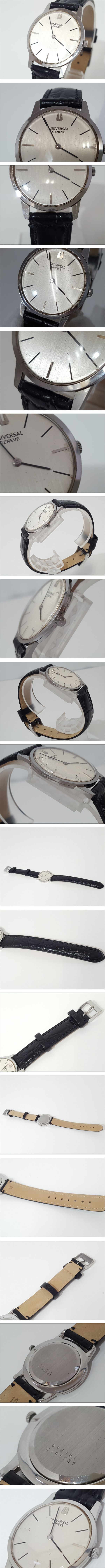 ※佐川急便の場合、離島など別途中継手数料がかかる地域が御座います。 その場合はお振込みを追加でお願いする場合が御座います事、 事前にご了承の程、宜しくお願い致します。 [商品名] 1円スタート UNIVERSAL GENEVE ユニバーサル ジュネーブ 842101 手巻き ヴィンテージ 腕時計 [サイズ] ケース(リューズ込み)約3.5×3.2cm, 風防(ガラス/樹脂面)直径約2.7cm, ベルト幅約1.5cm, 腕周り約16-20cm, ホール数7個 [素材] ステンレススチール×本革レザー他 [カラー] シルバー系 [状態] 風防全体に小キズ、 文字盤の3時側に汚れ、 金属部分にキズが御座いますが、 その他は良いと思います。