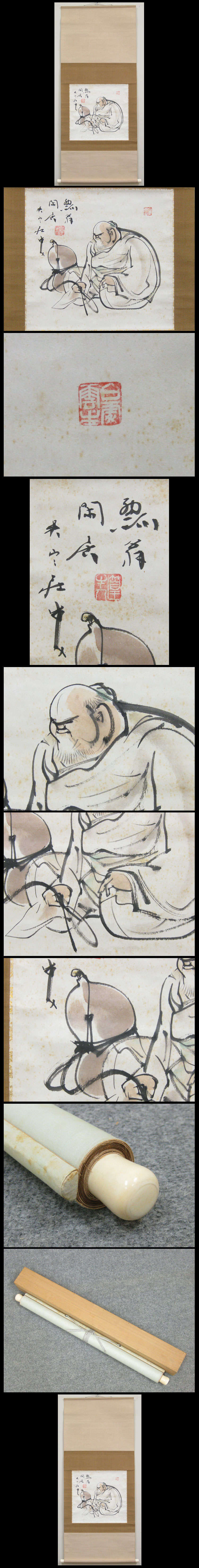 【篁牛人】1901-1984 昭和時代の日本画家。明治34年10月10日生まれ。 商工省工芸展で受賞をかさね,昭和15年ごろからピカソに傾倒し絵画に転向。 仏教や老荘思想などを主題に,渇筆技法で独自の水墨画をえがく。 昭和59年2月25日死去。82歳。富山県出身。高岡工芸学校卒。 幼名は光磨。本名は浄信。作品に「老子出関の図」など。 ★商品サイズ★ ■掛軸 139×59.5cm ■作品 43.5×45.5cm ★商品の状態★ 作品に時代のしみ汚れがあります。 表具に薄じみがあります。 ご承知のうえご入札をお願いします。 時代など詳しくは画像にてよく確認のうえでご検討いただければと思います。 どうぞよろしくお願いいたします。 ★真作と明記しております作品については、 万が一真作でない場合は、落札金額・送料をご返納致します。 また鑑定するにあたって、公的機関での鑑定料・交通費・その他の経費は ご落札者様ご自身のご負担になります。 鑑定についての保証期間は30日とさせて頂きます。 |