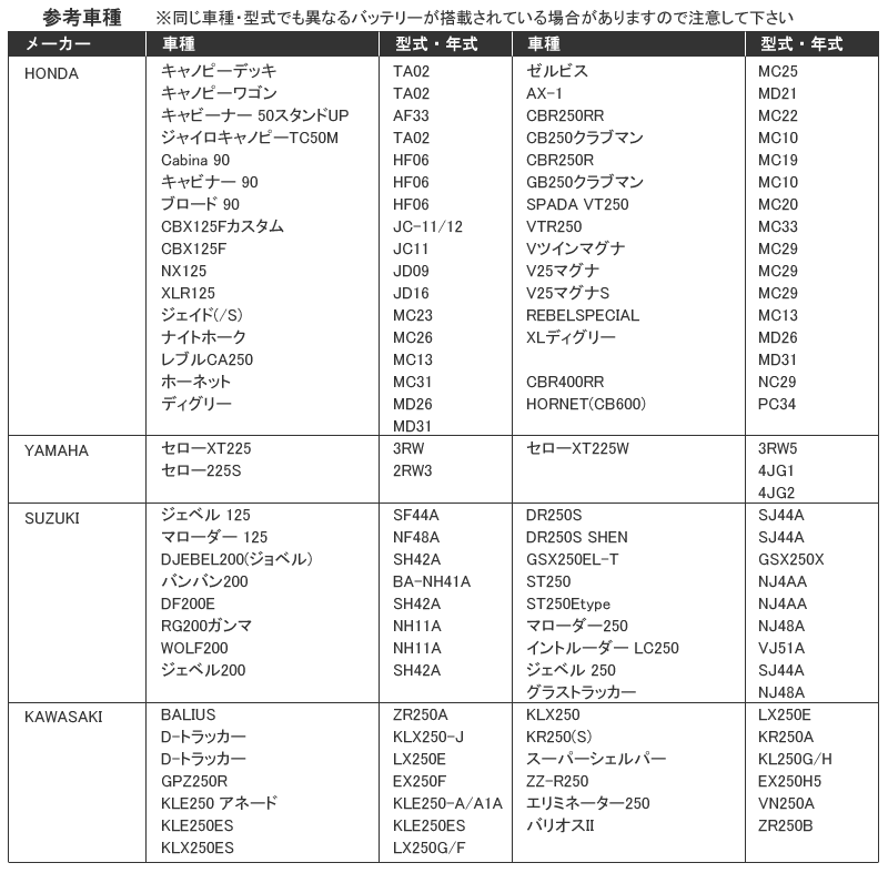 | YUASA対応 | YTX7L-BS |