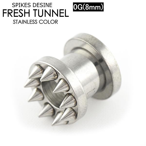 フレッシュトンネル スパイク 0ゲージ(8ミリ) サージカルステンレス316L ボディピアス コーン デザイン アイレット イヤーロブ 0G (8mm)