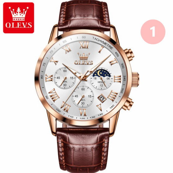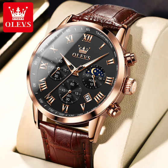 | Olevs 男性 クォーツ時計 耐水性 高級 スポーツ レザーストラップ カジュアル 多機能 ビジネス | ||||