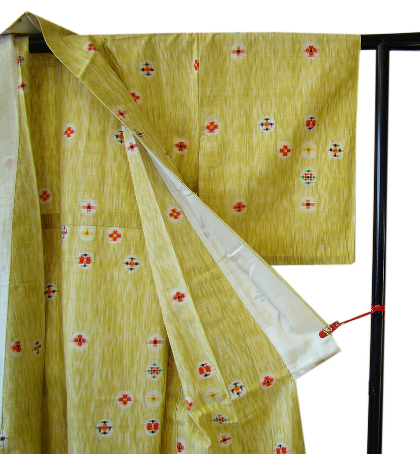 | 商品説明 | こちらのお品は「単衣」ですので5月、6月、9月にお召頂ければと思います。 着物には、大きく分けて「袷(あわせ)の着物」と「単衣(ひとえ)の着物」と「夏着物」があります。 反物(表地)を着物に仕立てるときに、裏地類をつけるものを袷の着物、 つけないものを単衣の着物と呼び、胴裏や八掛といった裏地がつかない一枚ものの着物です。 また裏地がないため、座る時などにヒップのラインが目立たないよう、 居敷当て(いしきあて)の生地をつけることもあります。 居敷当ては付いておりません。 とてもしなやかなふっくらとした柔らかな手触りの着心地良い単衣仕立ての紬地、 木蘭色地に朱、緑、黒、黄、橙色等の織柄が粋な着物姿を演出しております。 |