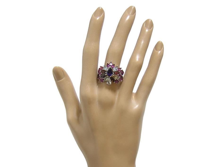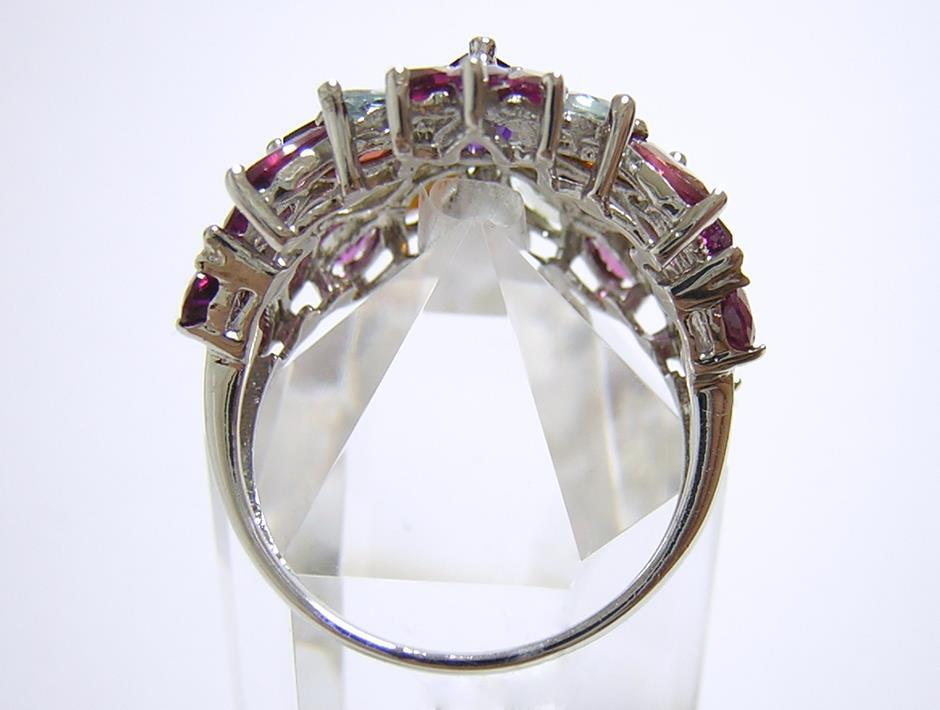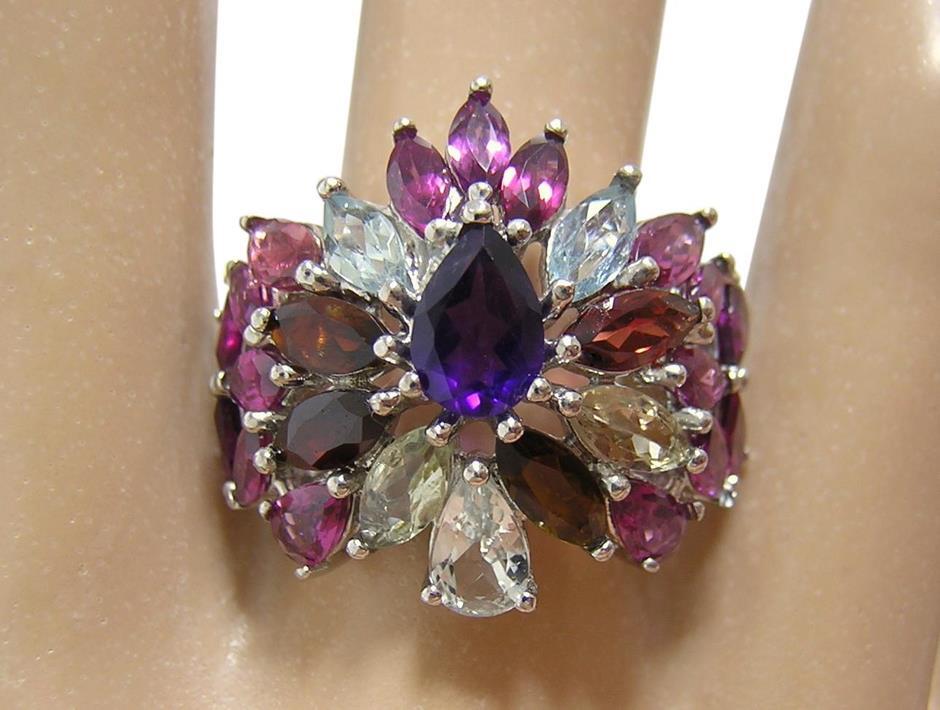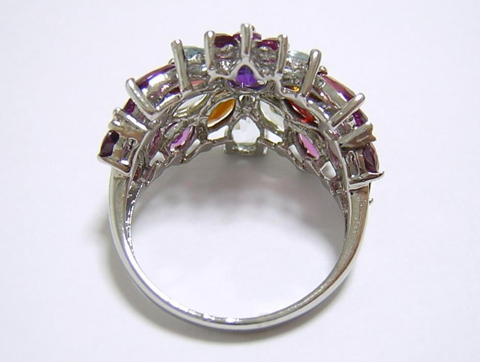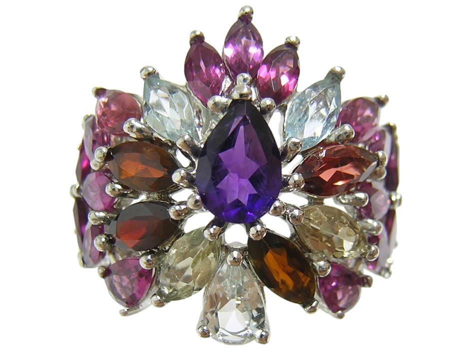 天然アメジストとアクアマリン、ロードライトガーネットとマルチカラートルマリンを使用したデザインリングです。