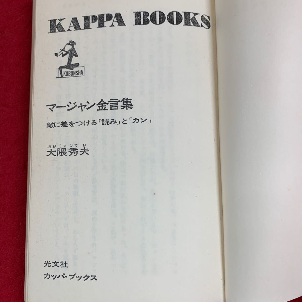 Af-386/マージャン金言集/敵に差をつける読みとカン/大隈秀雄/光文社/昭和49年6月発行/役づくり/河を読む/聴牌の仕方/ドラ対策/L3/70321