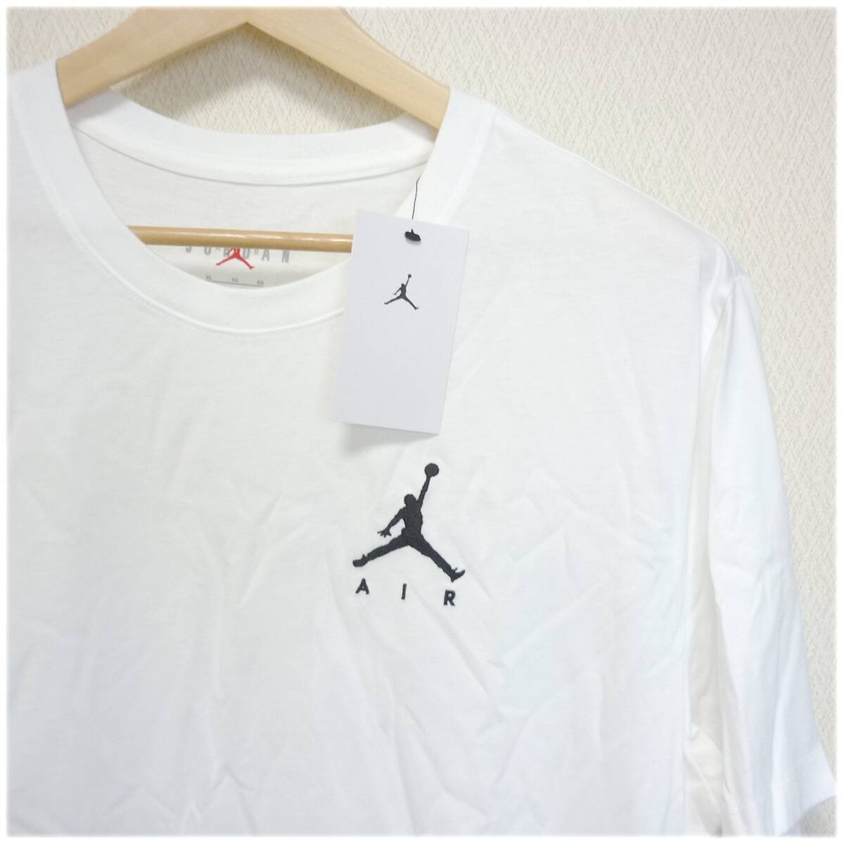 新品未使用品ジョーダン ジャンプマン エア Tシャツは、胸にグラフィック刺繍をあしらって個性を表現したコットン100%のクルー。スタンダードフィット定番の快適な着用感ナイキ正規品 品番AH5296-100 1721サイズ (メンズXL) 身丈80cm 身幅61cm 胸囲112~124cm