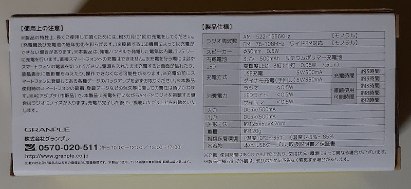 5982 未使用、未開封 災害対策 GRSRLT ダイナモ 小型ラジオライト GRANPLE 発電機能付き 手回し発電