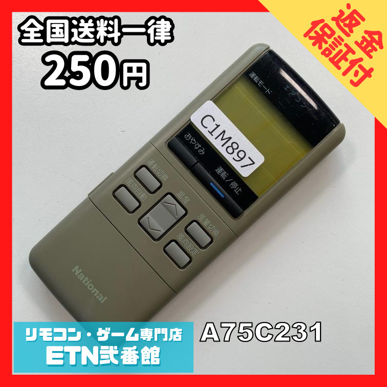 C1M897【送料250円】エアコン リモコン / National ナショナル A75C231 動作確認済み★即発送★ * 冷房 暖房