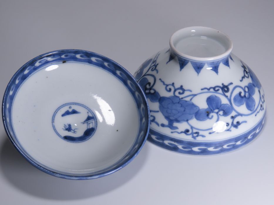古伊万里の蓋茶碗.染付唐草.使用品.ふり物や窯傷はありますが傷はありません。 | ||||||||||||||||||||