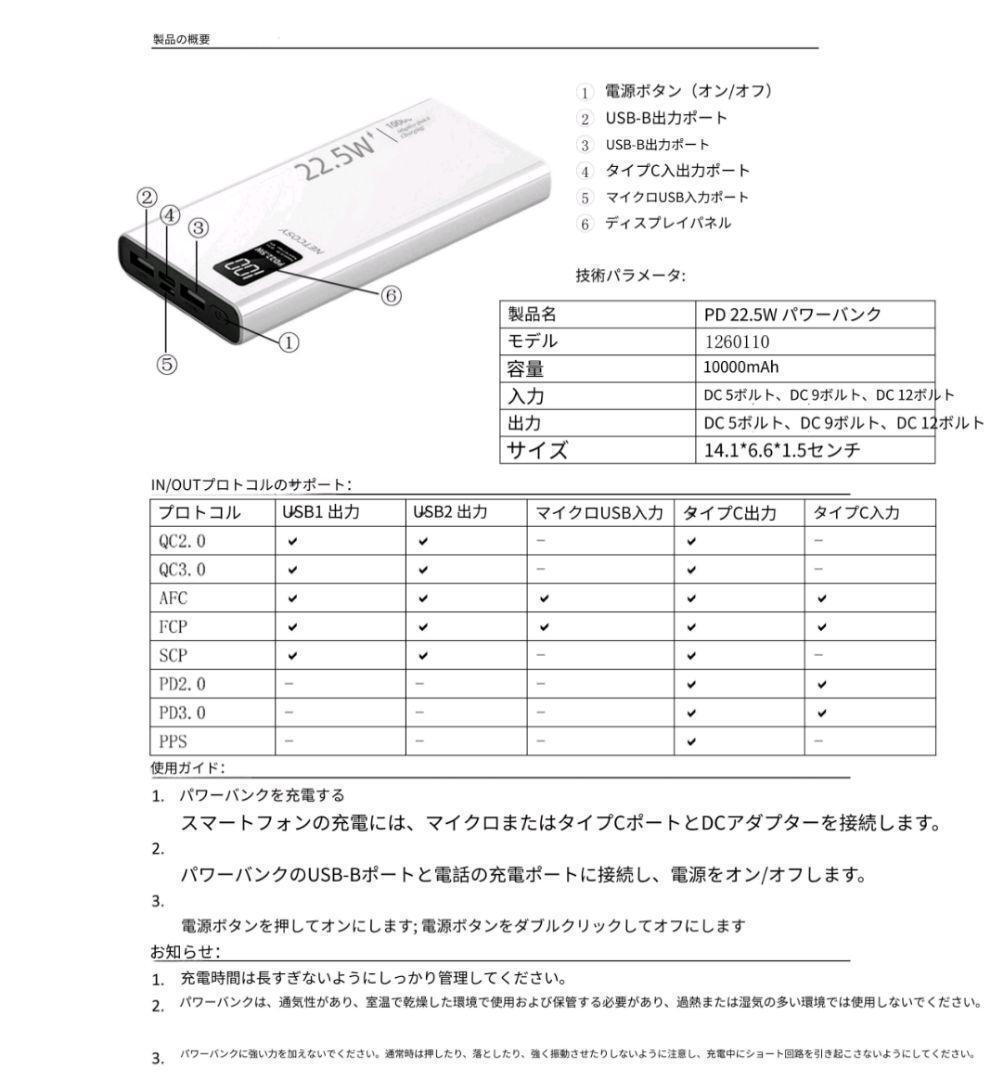10000mAhの容量を持ち、22.5Wの急速充電に対応したポータブルバッテリー。| 出价者 | 信用 | 价格 | 时间 |