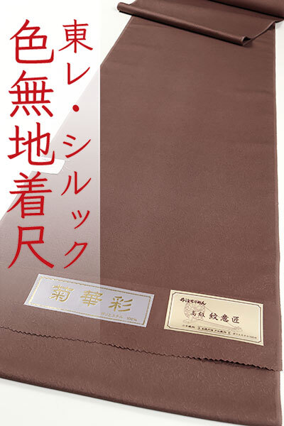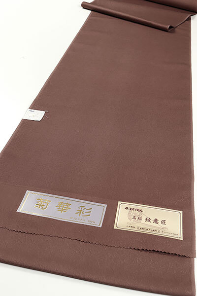 和遊館 即決kka2795 東レ シルック 丹後ちりめん 高級 紋意匠 菊華彩 色無地 着尺 洗える着物 菊地紋 ココアブラウン