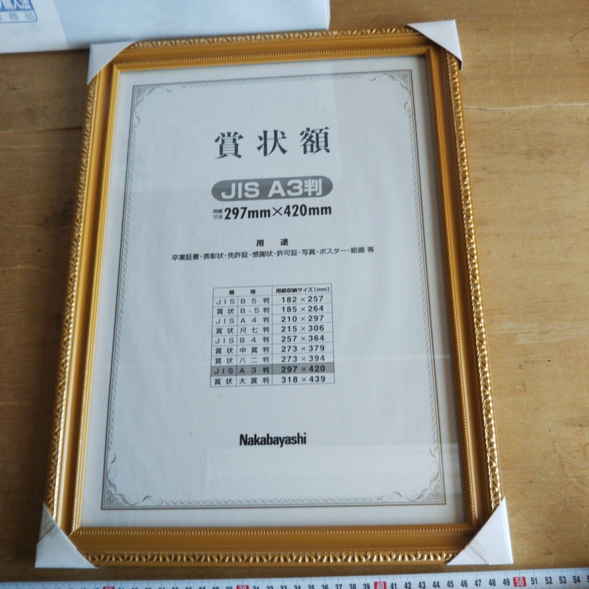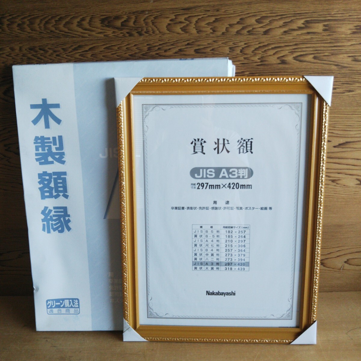 25080911 Nakabayashi 木製額縁 A3 JIS規格 金ケシ 額縁 賞状額縁 写真入れ ポスター 絵画 木製