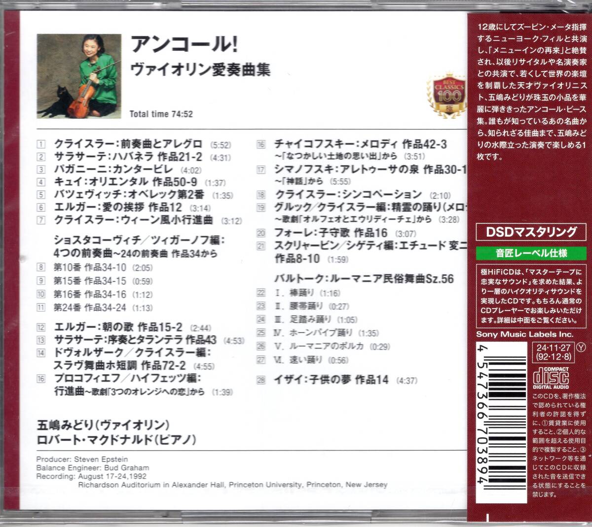 ★五嶋みどり/アンコール! ヴァイオリン愛奏曲集/天才の名演がDSDマスタリング&極HiFiCD仕様&音匠レーベルで鮮やかに甦る!未開封品!| 出价者 | 信用 | 价格 | 时间 |