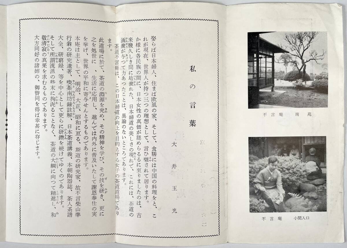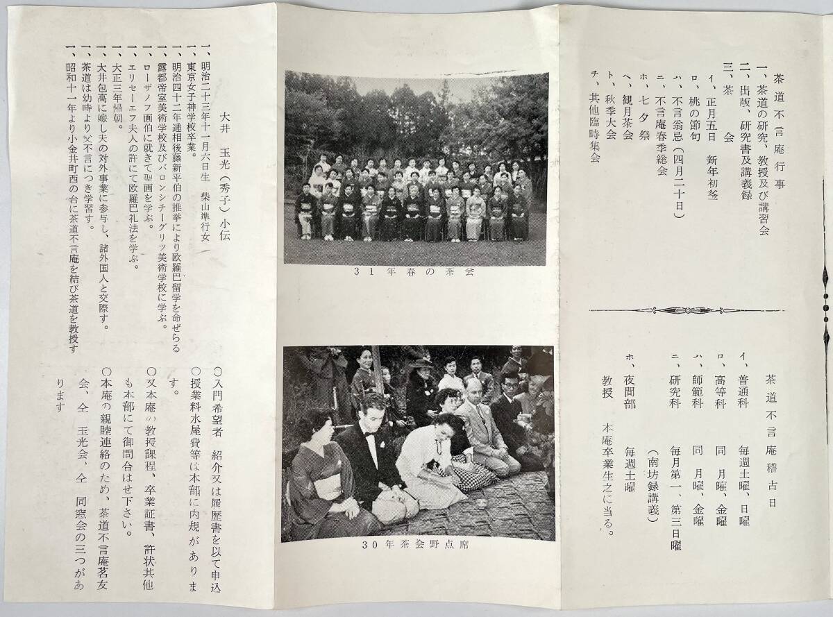 茶道不言庵 ご案内(パンフレット/不言庵流/昭和30年代?/レトロ/JUNK)