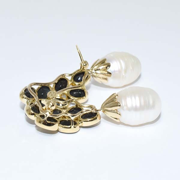 サファイアの下で淡水パールが揺れる18金イエローゴールド製ブローチ。| 商品詳細 | |||||||||||||||||||||||||||||||||||||
