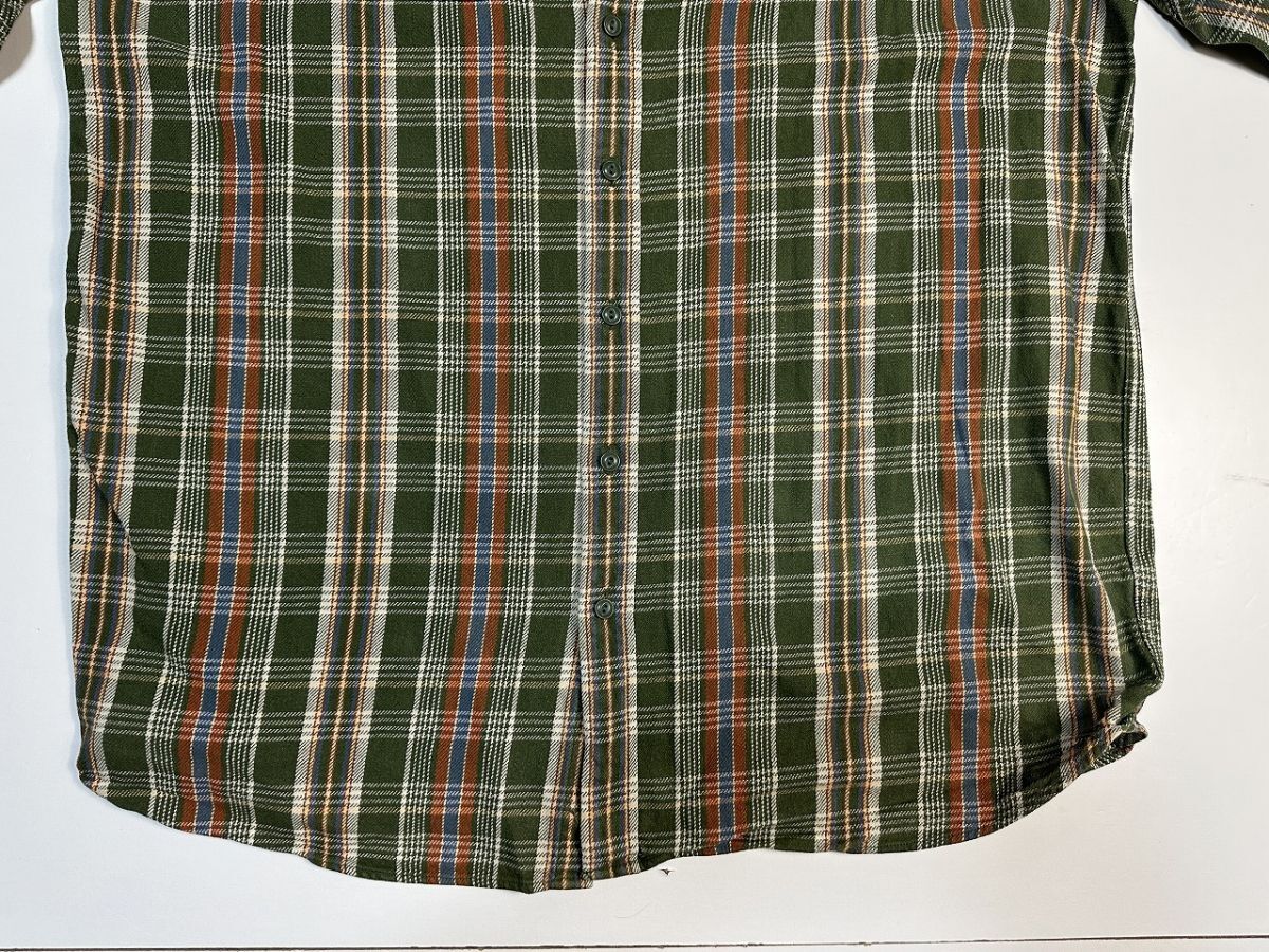 ●US USED ビッグサイズ US古着 L.L.Bean エルエルビーン ネルシャツ チェック柄 長袖シャツ ポケット グリーン緑カーキ×オレンジ【XL】