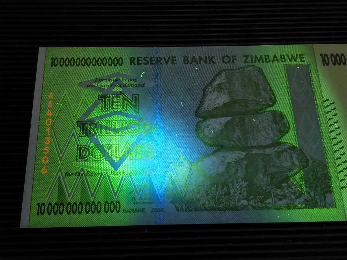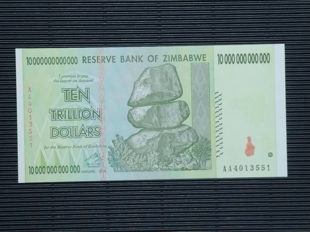 ジンバブエ ハイパーインフレ紙幣★ 10兆(10 Trillion)ドル札 2008年 未使用 束だし本物 UVライト確認済み 本物保証 p-88 #AA4013551 [浏览原始页面]