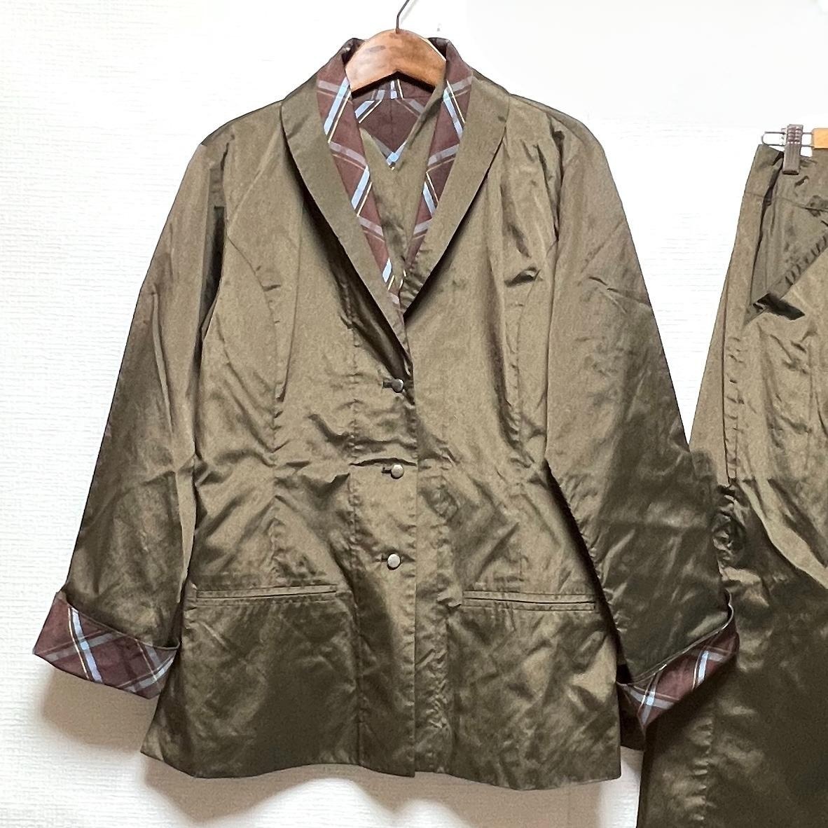 トランク TRUNK HIROKO KOSHINO セットアップ サイズ9 カーキ系 レターパック可 (954814) *商品説明* ・表記サイズ: 9 ・色: カーキ系 ・素材: ポリエステル 100%、 ・実寸サイズ(単位cm): ジャケット 肩幅42、胸囲48、ウエスト部46、着丈65、袖丈58、ベスト 肩幅33、胸囲46、着丈49、 スカート ウエスト35、ヒップ49、着丈87、 *平置き採寸となります。 ・商品状態: スカート裾に点々とシミが見られます。 多少の使用感はございますが全体的に状態は良好です。 購入はご了承頂ける方へお願いします。 | ||||||||