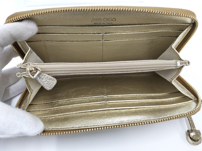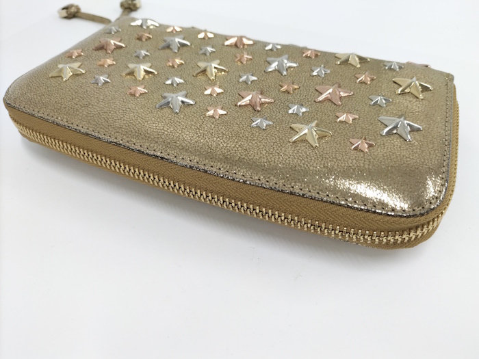 | ◆商品情報 | ・カラー:ゴールド ・素材/ライン:レザー ・サイズ:最大約 W20×H11(cm) ・札入れ×2 ・ポケット×2 ・カード入れ×4 ・小銭入れ×1 |