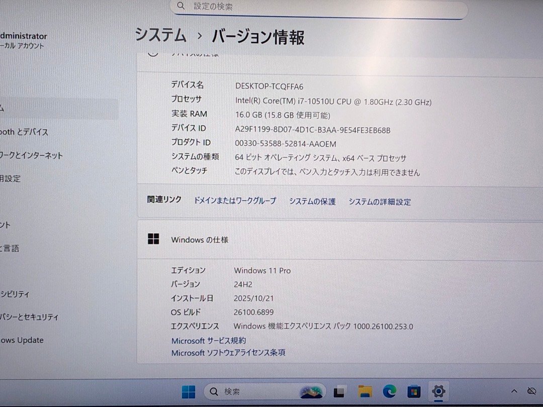 CPU | Intel(R) Core(TM) i7-10510U CPU @ 1.80GHz | 光学式ドライブ | なし |