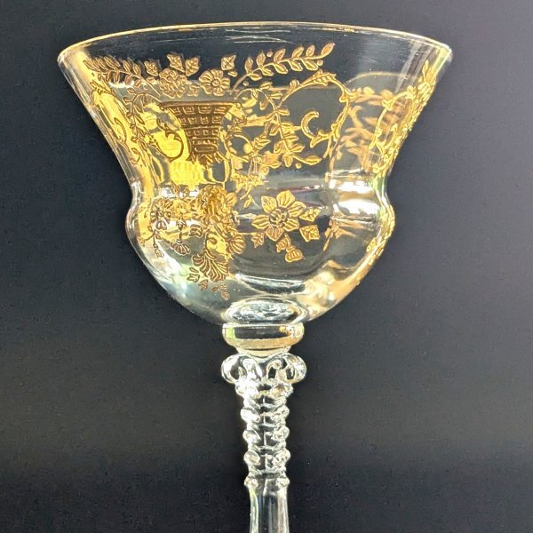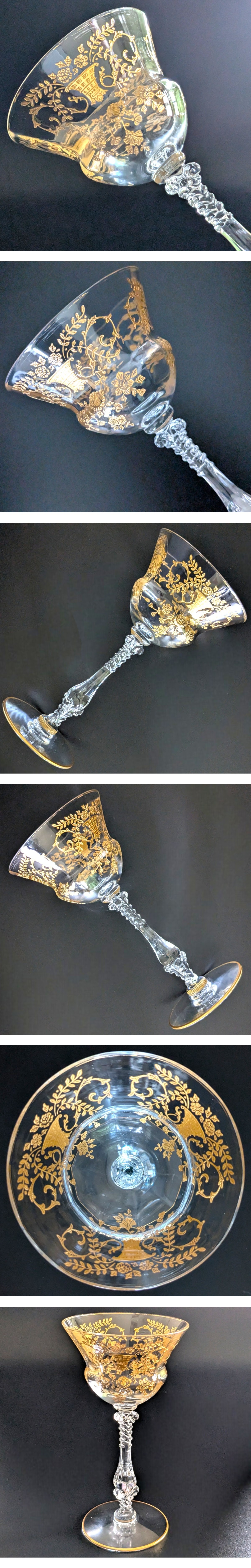 【良品 / ばら売り用】ケンブリッジ Portia 3126 シャンパングラス 金彩アールヌーボー装飾 アンティーク 若干の擦れ 1022