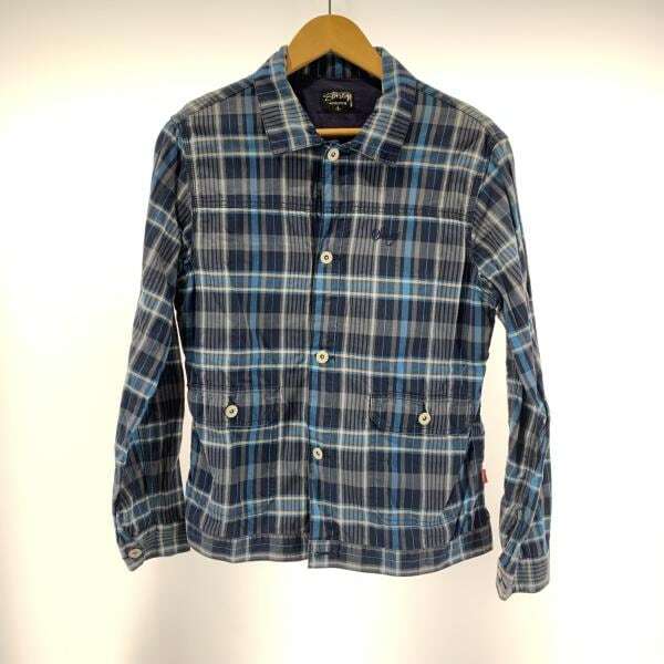 | 209999092678)STUSSY チェックエンジニアジャケット サイズS ブルー ステューシー |