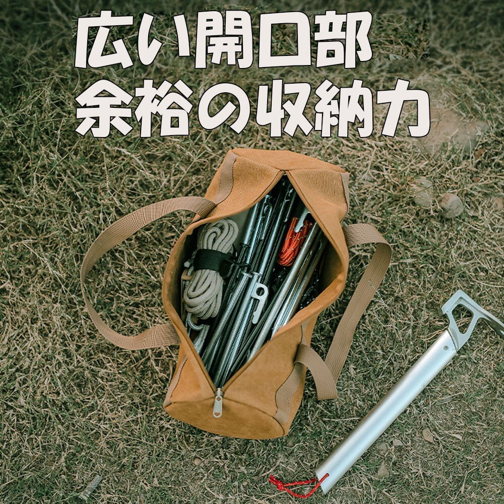 | 商品説明 | 散らかりがちなペグをおしゃれに収納できる 帆布生地のペグケースです 30cmのペグ用に作られており 空いたスペースにはペグハンマー 自在金具 ガイロープ パラコードなど 様々なキャンプ用品 アウトドア小物を収納できます 頑丈なキャンバス素材で大容量が自慢です ペグバッグはもちろん 道具入れ ツールボックスとしてもオススメです |
