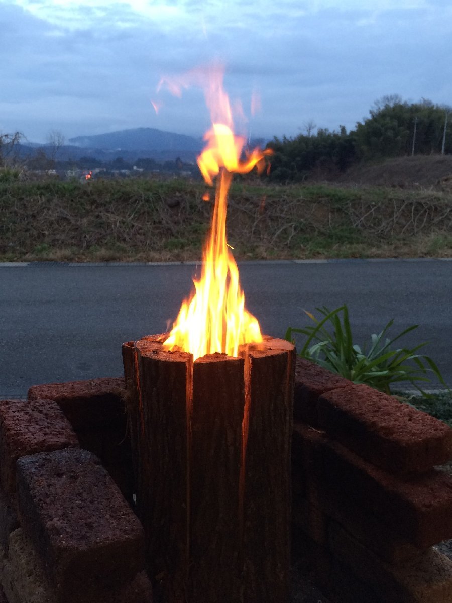 | ※切り込みから漏れ出る光は幻想的で、又樹芯部より燃えていきゴトク替わりにもなります。 |
