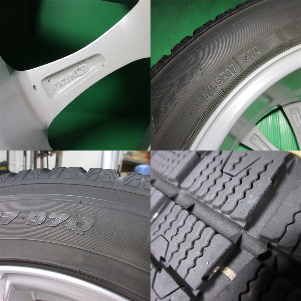・備考 【タイヤ】 残り溝:80%山程度 ※これからも長く冬シーズンにご活躍いただける溝深さです。 ヒビ:少し有(接地面) サイドの傷:1か所(浅い傷) 【ホイール】 塗装の浮き:少し有(中心部) 腐食・サビ:少し有(センターキャップ) 小傷や浅い傷等:少し有 汚れ付着:少ない ホイールの一言評価『 比較的良い 』 ※できるだけ詳細調査致しました。使用品・中古品となりますので、商品画像や商品説明を良くご覧いただいてご検討下さいませ。 ・発送について ![]() | ||||