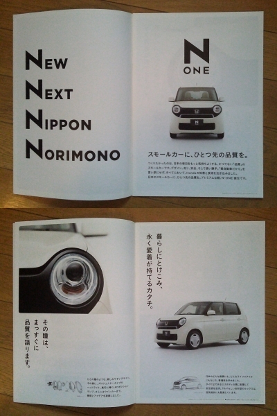 | 商品説明 | □□□□□□□□□□□□【重要】□□□□□□□□□□□□□□ 便利機能の「まとめて取引」ご利用ご希望の際は 《必ず》運用ルールをご確認・ご理解の上、ご依頼の前に 「取引ナビ」より「まとめて取引」ご希望の旨ご一報下さい ↓ 「まとめて取引」ヘルプページのリンク ↓ https://support.yahoo-net.jp/SccAuctions/s/article/H000013071 □□□□□□□□□□□□□□□□□□□□□□□□□□□□□□ ◆ HONDA N-ONE/N-ONE Premium (N-ワン/プレミアム) (JG1/2型中期) 2014年1月発行 34ページのカタログです □ N-ONE 初代 中期型 □ HONDA Nプロジェクト 第3弾 □ 軽トールワゴン □ 標準車/Premiumの2タイプ □ エンジン型式 S07A型 □ 直3 0.66L DOHC12Vターボ 64馬力 □ 直3 0.66L DOHC12V自然吸気 58馬力 □ 無段変速オートマチック (CVT) □ 2WD(FF) / リアルタイム4WD □ 販売期間 2012年〜2020年 ■ 2tone color style 追加後 ◆ 掲載グレード □ 直3 0.66L DOHCターボ 2WD (JG1型)/4WD (JG2型) ・ PremiumTourer "L package" ・ PremiumTourer ・ Tourer "L package" ・ Tourer □ 直3 0.66L DOHC自然吸気 2WD (JG1型)/4WD (JG2型) ・ Premium "L package" ・ Premium ・ G "L package" ・ G ◆ カタログサイズ (約)縦29.5cm×横21cm ☆ 通常A4サイズ ☆ ◆ カタログ重量 (約) 200g ※単品梱包後の目安 ◆ 状態 個人的には良好な部類だと思います □付属品など□ ◆ プライスリスト (価格表) 2013年10月1日現在 見開き □差し込み文書など□ ◆ 有りません | ||