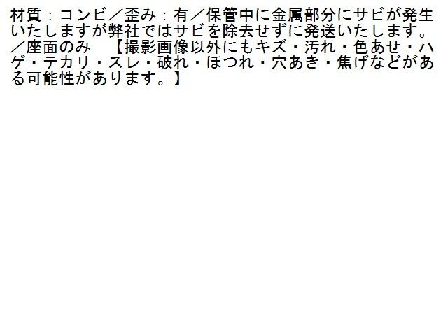 | 商品情報 | 材質:コンビ/歪み:有/保管中に金属部分にサビが発生いたしますが弊社ではサビを除去せずに発送いたします。/座面のみ 【撮影画像以外にもキズ・汚れ・色あせ・ハゲ・テカリ・スレ・破れ・ほつれ・穴あき・焦げなどがある可能性があります。】 | ||