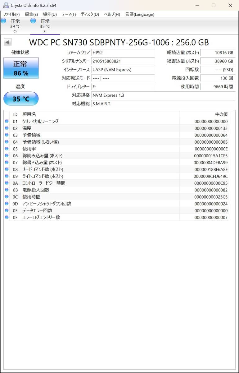 | ★☆1円 ~スタート☆WDC SN730 SSD M.2 2280 NVMe 256GB 使用時間:9669H☆★ | |