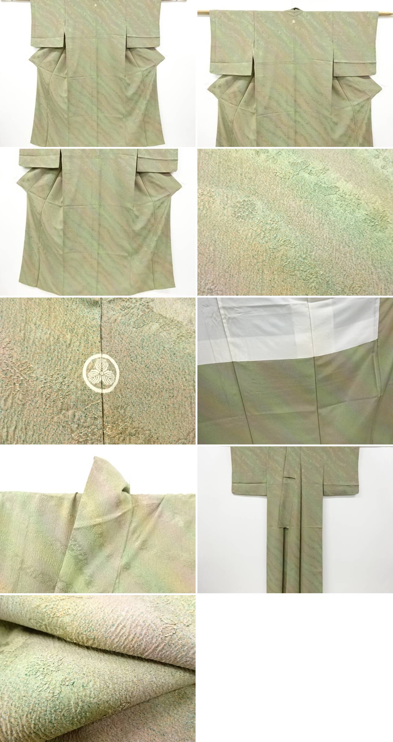 | お着物の状態をできる限りお伝えできるよう努力しておりますが、当店で出品の商品は全てアンティークになります。 一品一品丁寧に検品の上、出品させて頂いておりますが、稀に小さな見落としや、アンティーク特有の経年に伴う汚れや傷のある場合もございますので、アンティーク・中古品にご理解ある方のみのご入札をお願い致します。 寸法に関しましては、一品一品手作業での採寸であり、性質上生地の伸縮性もございますので、若干の誤差はご了承ください。 ごく稀にですが、樟脳やアンティーク特有の匂いがある場合がございます。 匂いに関しては、商品コメントには記載しておりませんので、ご理解の上ご入札下さい。 はぎれ商品につきましては、解き商品が多くなっております。 生地端に縫い糸の残りが多く残った状態での出品となります。 ご理解の上でのご入札と、ご自宅でのお手入れをお願い申し上げます。 | |
