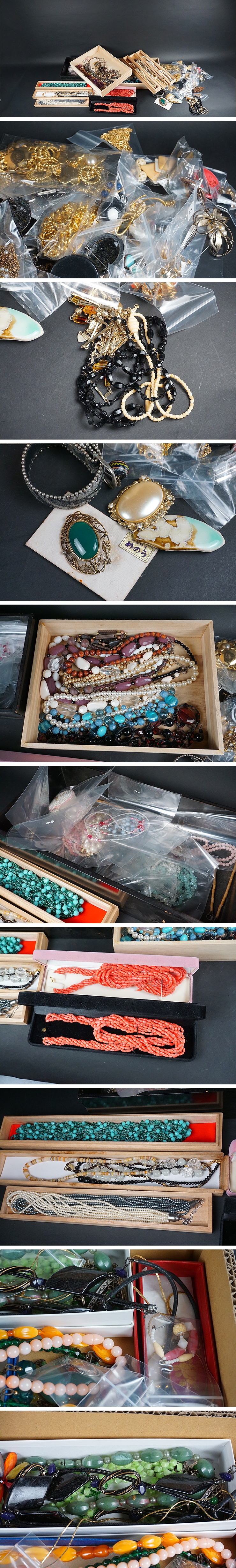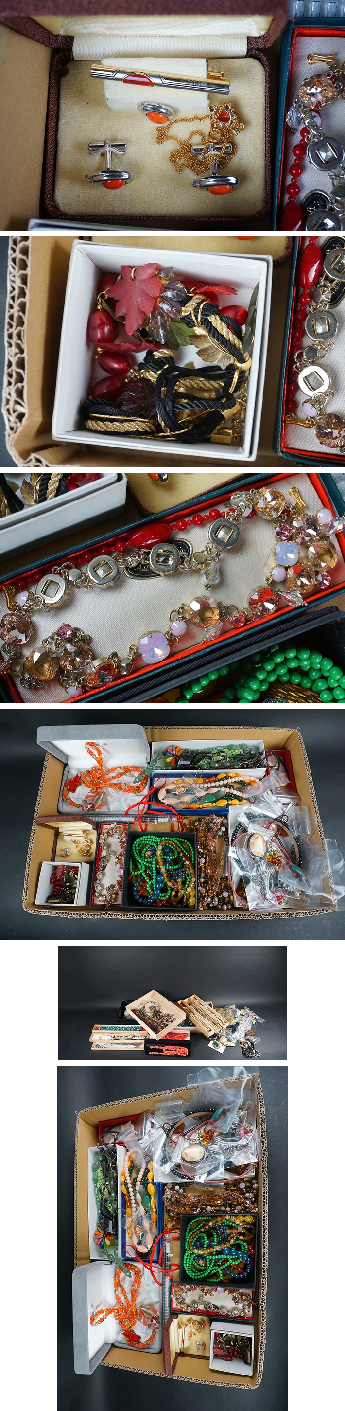 | E-006■古いジュエリー ネックレス・イヤリング・指輪・腕輪・カフスまとめ売り 色々 | ||