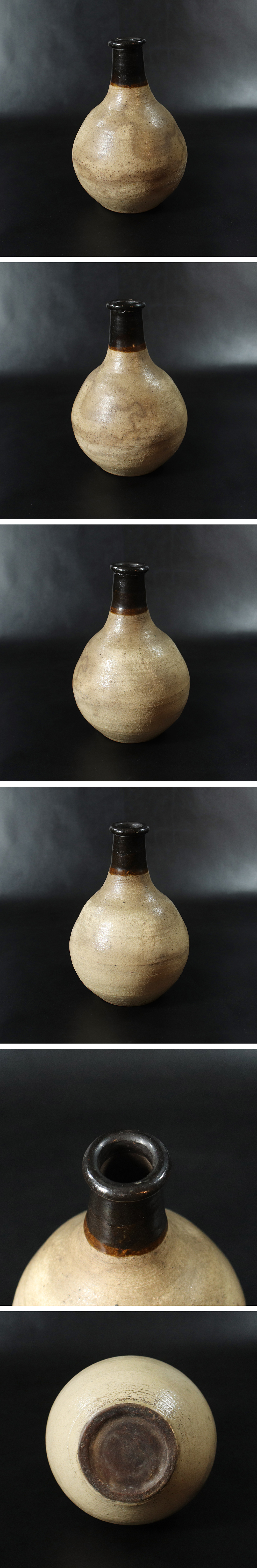 白釉と鉄釉の掛分が端正に施された完成度の高い徳利形花器です。