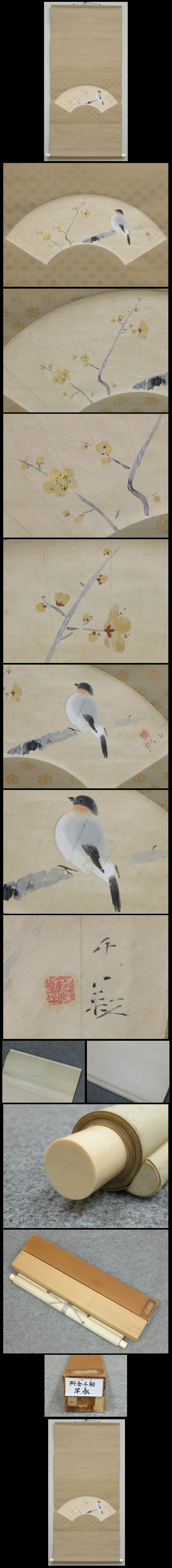 【郷倉千靭】 1892年3月3日生~1975年10月25日没 1892年 富山県射水郡小杉町(現・射水市)に呉服商の次男として生まれる 1904年 富山県立工芸学校漆工科を卒業、竹内の工芸と絵画の素地を培う 1915年 東京美術学校日本画科を卒業、本名與作で寺崎広業に師事 1916年 アメリカへ留学(ボストン美術館所蔵品などの模写、ニューヨークで作品発表) 1921年 帝展(第2回)「雑草の丘」で初入選(後援者出品による) 1922年 院展(第8回日本美術院展)「地上の春」で初入選、同年院展賞受賞 1924年 日本美術院同人に推挙される 1934年 帝国美術学校日本画科教授に就任 1936年 多摩美術学校(現・多摩美術大学)教授に就任、長く教壇に立つ 195260年代 院展中心に出品、「山霧」で日本芸術院賞受賞、以降評議員・会員になる 1971年 勲四等旭日小綬章を受章 1972年 日本芸術院会員に就任(没後は追贈勲三等瑞宝章) 1975年 世田谷区の病院で急性心不全により逝去、享年83歳 ★商品サイズ★ ■掛軸 107.5×50cm ■作品 20×45cm ★商品の状態★ 作品・表具共にわずかなしみ汚れがあります。 裏側の上部・下部に時代のしみ汚れがあります。 オレンジ色の紙箱に汚れ、破れがあります。 ご承知のうえご入札をお願いします。 時代など詳しくは画像にてよく確認のうえでご検討いただければと思います。 どうぞよろしくお願いいたします。 ★真作と明記しております作品については、 万が一真作でない場合は、落札金額・送料をご返納致します。 また鑑定するにあたって、公的機関での鑑定料・交通費・その他の経費は ご落札者様ご自身のご負担になります。 鑑定についての保証期間は30日とさせて頂きます。 |