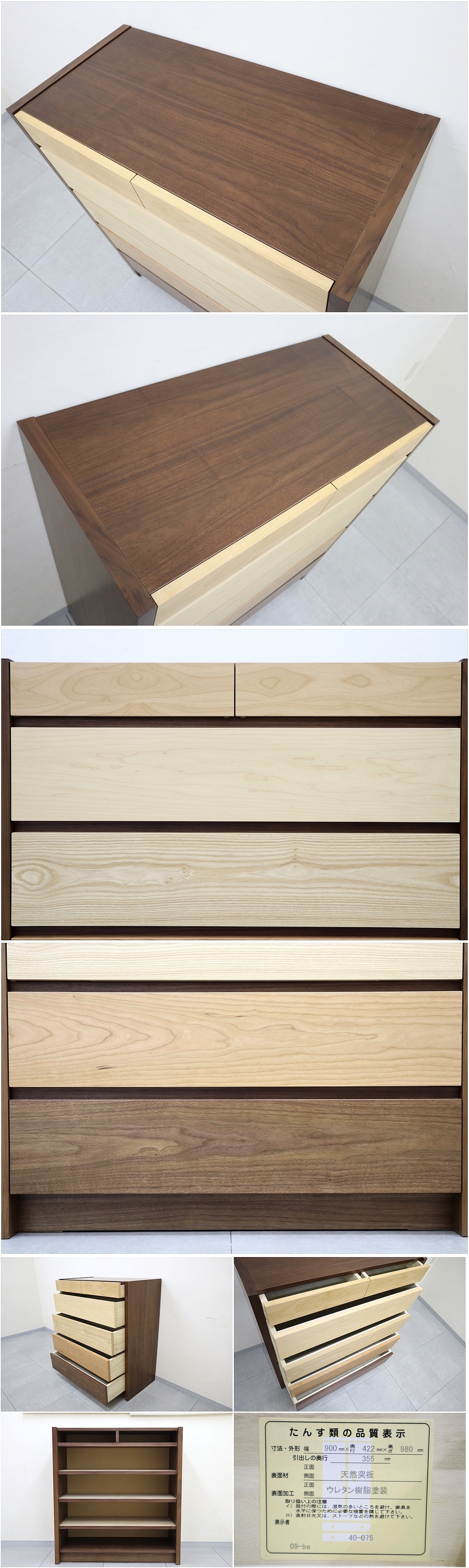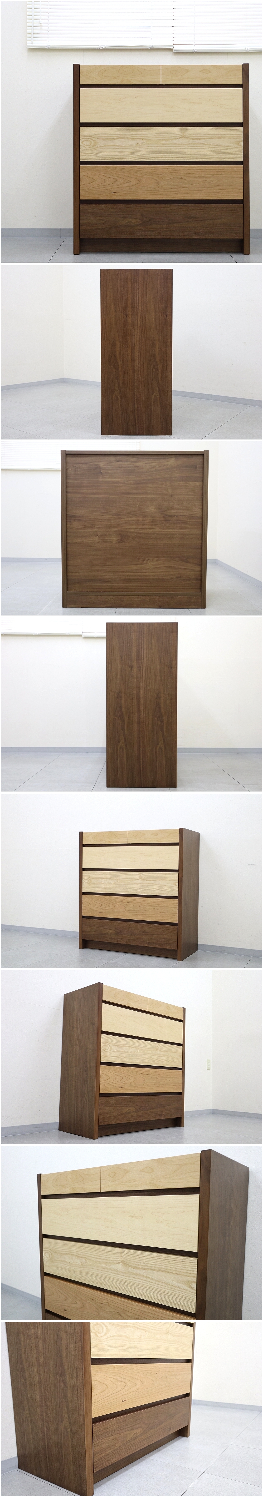 ◆展示品/美品◆大川家具◆Mobel メーベル チェスト 幅90cm 5段 アルダー メープル タモ チェリー ウォールナット 整理タンス 洋服 タンス