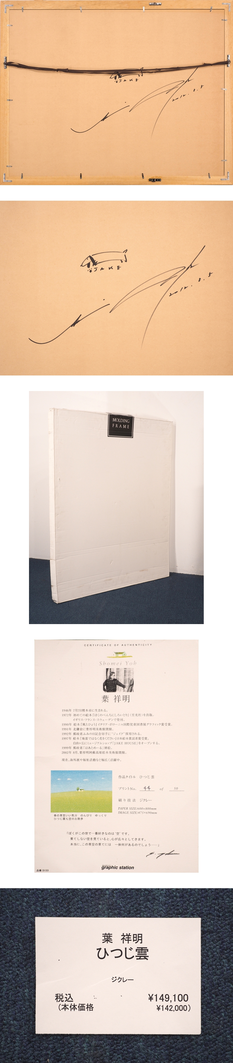 | ■ 痛みの状態を全ては撮影できておりませんので画像で判断が難しい方はご入札をお断りします。 ■ 箱が不要、必要な方は言ってください。 ■ 真作、模写はあくまで当社判断です。 ■ 誤入札、金額間違いによるキャンセルはできません。 ■ 発送はヤマト運輸もしくは西濃運輸の元払いのみです。 ■ 悪い評価が多い方や新規の方は入札を取り消す場合があります。 ■ 落札後、3日以内にご連絡がない場合はキャンセルさせていただきます。 ■ こちらから評価はいたしませんので評価が必要な方はおっしゃってください。 評価は同等の評価をいたします。 ■ 商品が説明と違った場合(真贋含む)、14日以内にご連絡ください。 14日を過ぎますと保証対象外になります。 ■ 鑑定代、交通費、事務手数料など商品代金と送料以外の返金は行いません。 ■ お客様都合のキャンセル・返品は行っておりません。 ■ 形状の違うもの、破損の危険性が高い物の同梱はできません。 ■ 土日祝は休みとなっておりますのですべての業務が停止致します。 |
