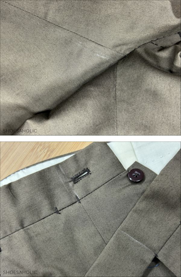 | 商品説明 | ●出品ID:115 ●管理コード:5250 ●ブランド:コスタンティーノ(アンティコ・パンタローネ) ●アイテム:パンツ(おそらくビスポークですが、サイズのタグが付いています。) ●サイズ:46~48位? ●カラー:オリーブ(写真の色よりもう少し緑がかっています。縫い代の写真の色味に近いです。) ●素材:コットン ●パンツ実寸値(採寸方法によって多少誤差が発生します。) 股下(股下の縫い目から裾まで):68.0cm 股上 (股下の縫い目からウエストまで):28.0cm ウエスト(平置きした状態で計測):42.0cm ワタリ(股下の縫い目部分の前見頃と後ろ見頃の距離):31.5cm 裾幅(裾の幅):19.0cm ●付属品:なし ●全体的な状態:B ( A:試着程度 B:使用数回 C:極上 D:美品 E:中古 F:一部訳あり) ●状態の特記事項 ・ナポリの服は着心地が柔らかい分、すぐに糸がほつれますのでご了承下さい。 ・コスタンティーノの服ですが、製造元のアンティコパンタローネのタグが付いています。 ・生地の反射で茶色がかって見えますが、実際はもう少しオリーブに近い色味です。縫い代の写真の色味に近いです。 ・表地や縫い代に製造時のチャコの跡があります。 ーーーーーーーーーーーー<お知らせ>ーーーーーーーーーーーーー ●お問い合わせについて:質問フォーム またはお電話でお願い致します。 ●実店舗について:店名:シューホリック 所在地:東京都国立市東2-6-6 フジノビル2階 ●営業日について:公式サイト上トップページの「インフォメーション」にてご確認下さい ●発送について:定休日・臨時休業日・土日祝日・休暇中 以外の営業日に行います、 ●送料について:ヤマト宅急便 元払い(日時間指定・営業所止め可)の全国一律1000円(北海道、沖縄は+500円) ●入札について:落札後24時間以内に必ず連絡の取れる方、落札後3日以内に決済可能な方のみご入札下さい。 ●お値引きについて:承っておりません。 ●返品について:商品の不備や記載ミス以外、気に入らなかった、サイズが合わなかったなどお客様都合での返品は受け付けていません。 ●評価について:評価は基本的に当ストアよりは差し上げておりません、ご希望の場合お知らせ下さい。 ●同時販売について:実店舗や公式サイトでも併売をしているため、以外で完売後に上で掲載の取り下げが間に合わない場合があり、ご落札後のキャンセルをさせて頂く場合があります。 ●特定商取引法に関する表記● ・販売業者 株式会社 シューホリック ・事業内容 高級靴・高級鞄を専門に販売、輸入および買取業務。 ・運営統括責任者 井上 祐太 ・古物営業許可証 株式会社 シューホリック 東京公安委員会 308891606450 ・郵便番号 〒186-0002 ・住所 東京都国立市東2-6-6 フジノビル2階 ・電話番号:042-508-3596 会社携帯電話:070-4100-5694 ・お支払い方法 かんたん決済 ・お支払い期日 ご落札後 3日以内 .26 |