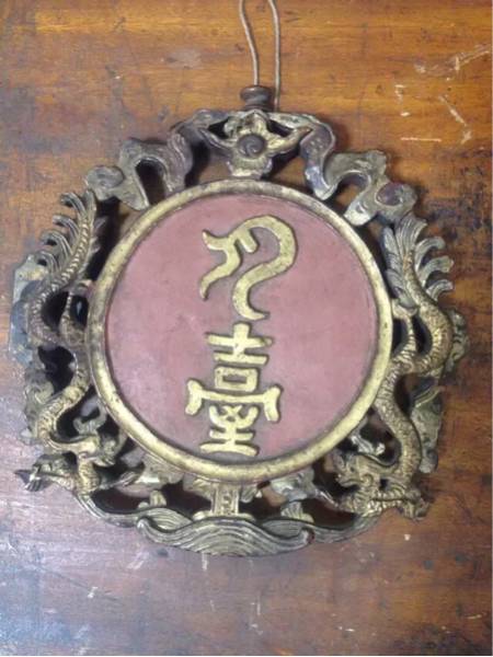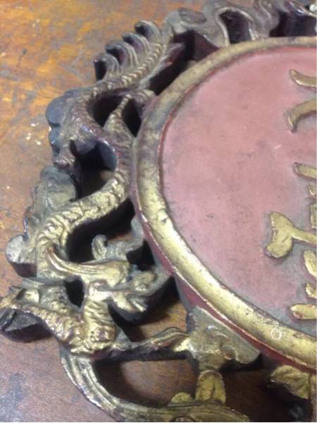 中国美術,漆器,中国皇家庭院の上壁掛です。月の賞の月台です,二つ龍の彫り,皇家御用です。この木は油木です。防水防裂,不変型状の木,非常希少の珍品と思います。経年に伴う,汚れ傷等ございます。送料820