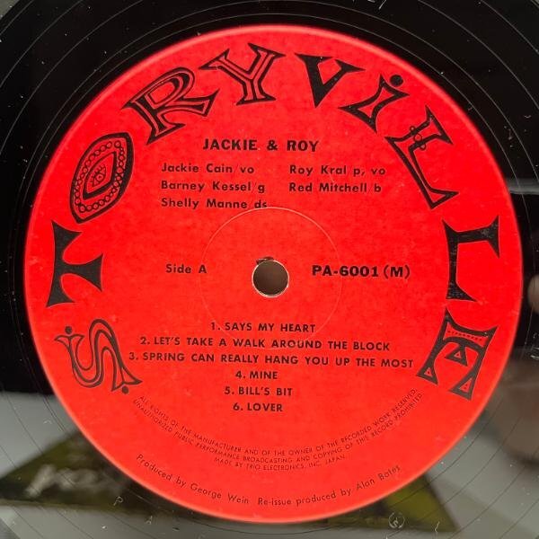 ■COMMENTジャズボーカル界のおしどり夫婦ジャッキー&ロイがStoryvilleに残した最初期の'55年発表作。名手揃いのコンボやロイのインティメイトなピアノ伴奏をバックに唄うジャッキーのソロから息のあったデュエットまで清々しい。 JACKIE CAIN(vo) ROY KRAL(vo/p) BARNEY KESSEL(g) RED MITCHELL(b) SHELLY MANNE(ds) JPN 70sプレス MONO 盤は十分概ね良好! ■CONDITION[JACKET] vg+上辺オープンサイドに3割ほどの裂け。背辺に透明テープの補強があります。 [RECORD] vg++/ex- (バリレラVR-IIでの評価)A1の前半にやや白っぽい軽微なキズ?スジ?を少し確認できますが、ダストレベルの小さなノイズも2, 3で大きな問題はありません。それ以外は極薄いマークを少し確認できる程度で十分良好です。 ■TRACKLISTA1 Says My HeartA2 Let's Take A Walk Around The Block A3 Spring Can Really Hang You Up The Most A4 Mine A5 Bill's Bit A6 Lover B1 Tiny Told Me B2 You Smell So Good B3 Lazy Afternoon B4 Dahuud B5 Listen Little Girl B6 I Wish I Were In Love Again >> 検盤システム |