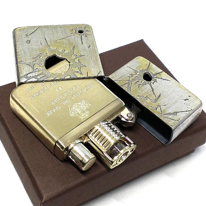 商品説明 | 【DEVIN スケルトンガン ターボフレームライター】 DEVINの銃撃が貫通したスケルトンガンデザインのかっこいいガス注入式ターボライターです。 コンマ8mmの厚いボディーとダメージ加工が重量感漂う仕上がり。 まるで銃撃を喰らったかのようなガン痕とダメージ感がリアリティー溢れる逸品。 ガン痕から見えるDEVINの紋章もお洒落なデザインです。 -DEVIN(デヴィン)- 語源は「詩人」、ゲール語では「悪党」を意味する言葉です。 ロゴとして刻印されているスカルは秩序を乱すものへの憧れと芸術性をコンセプトにワイルドかつラグジュアリーな究極のアイテムを求め造られており、加えて機能的で美しいフォルムはまたとない逸品となっております。 |