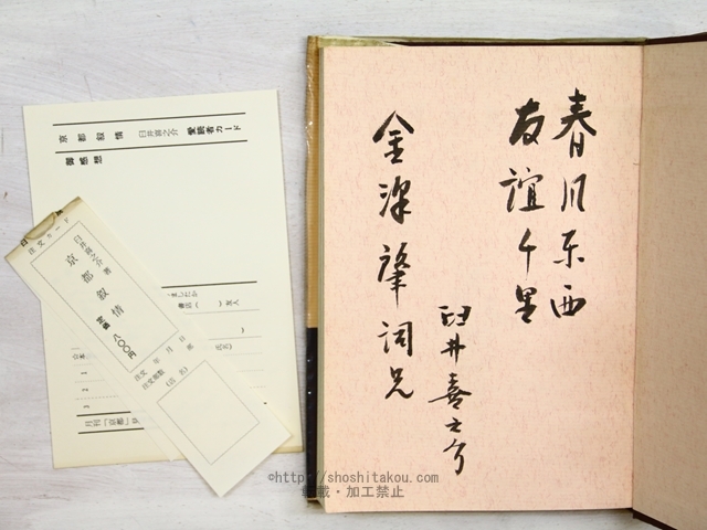 詩集 京都叙情 毛筆識語献呈署名入 / 臼井喜之介 ◯当店在庫から「臼井喜之介」の本を探す| ★ 発送方法 (送料無料) ・日本郵便のゆうパケット・レターパックライト・レターパックプラス・ゆうパックの中から荷姿の大きさに適した方法で発送します。(発送方法や到着日時はご指定いただけません。) ・上記発送方法はすべて追跡番号付き・土日配送有・速達扱いです。ゆうメールや定形外は発送に使用いたしません。 ・ゆうパケット・レターパックライトは郵便受けにお届け、レターパックプラス・ゆうパックは配達員対面受取です。防水梱包します。 ★ 必ずお読みください ・代金決済後の次の火木土に発送します。 ・ストア出品です。ご注文時に必要事項のご記入・決済いただいた後は、やり取り不要です。商品の到着をお待ち下さい。 ・肉筆物・美術作品は真作保証いたします。 ・商品のレファレンス(調べ物)サービスは行っておりません。また当店商品以外の無料鑑定は行っておりません。 |