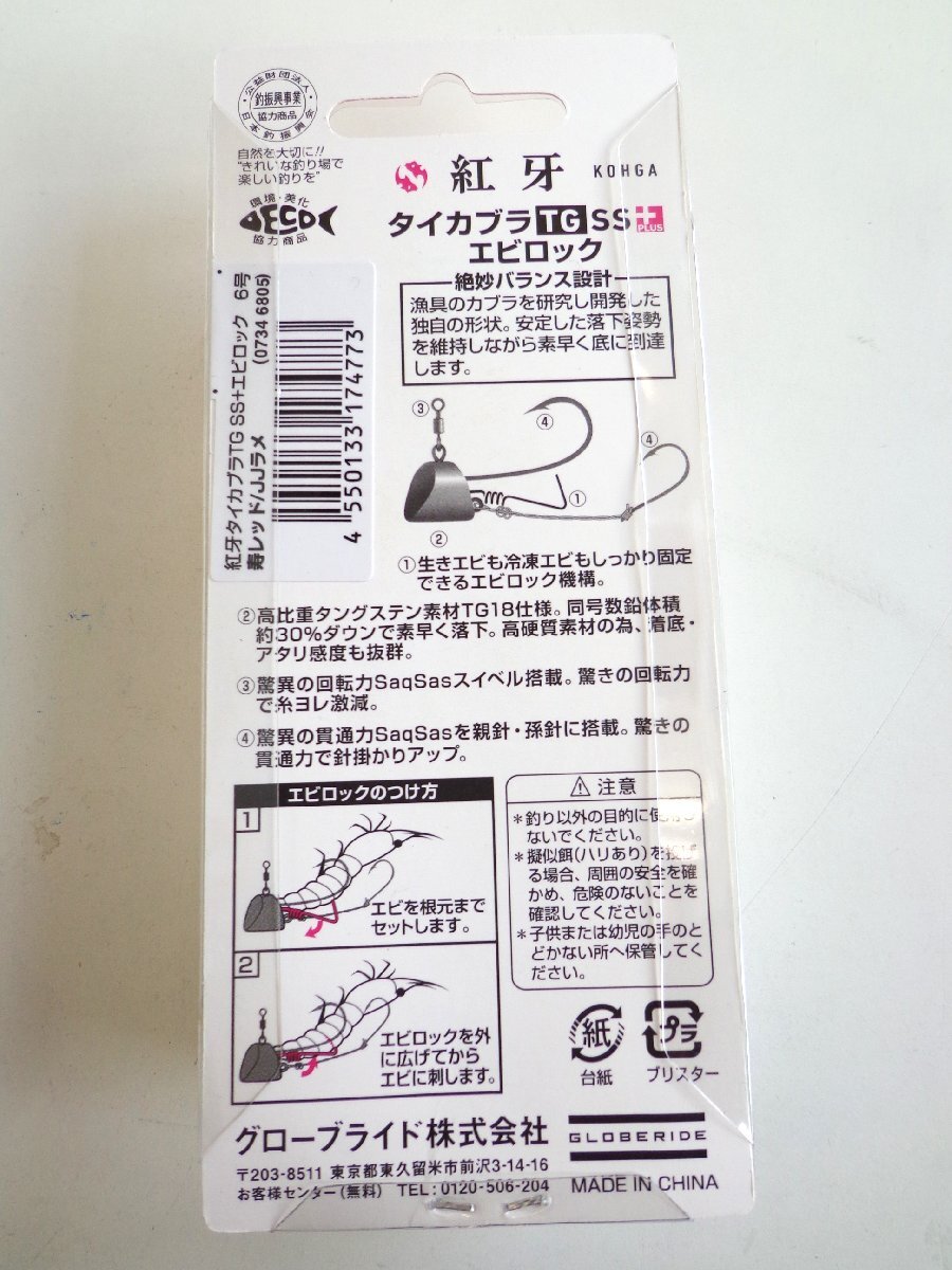 ダイワの紅牙 タイカブラTG SS+エビロック 6号(タングステンモデル)です。