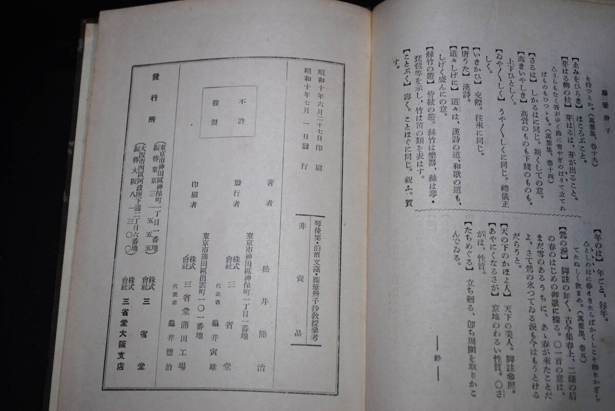 【売切り屋】琴後集 泊はく文藻 藤簍冊子 抄教授参考 文学博士 松井簡治 昭和10年 初版 非売品 三省堂 古書和本