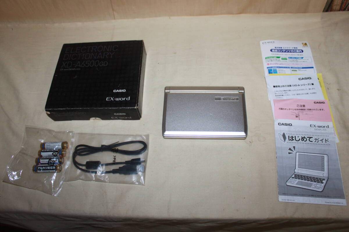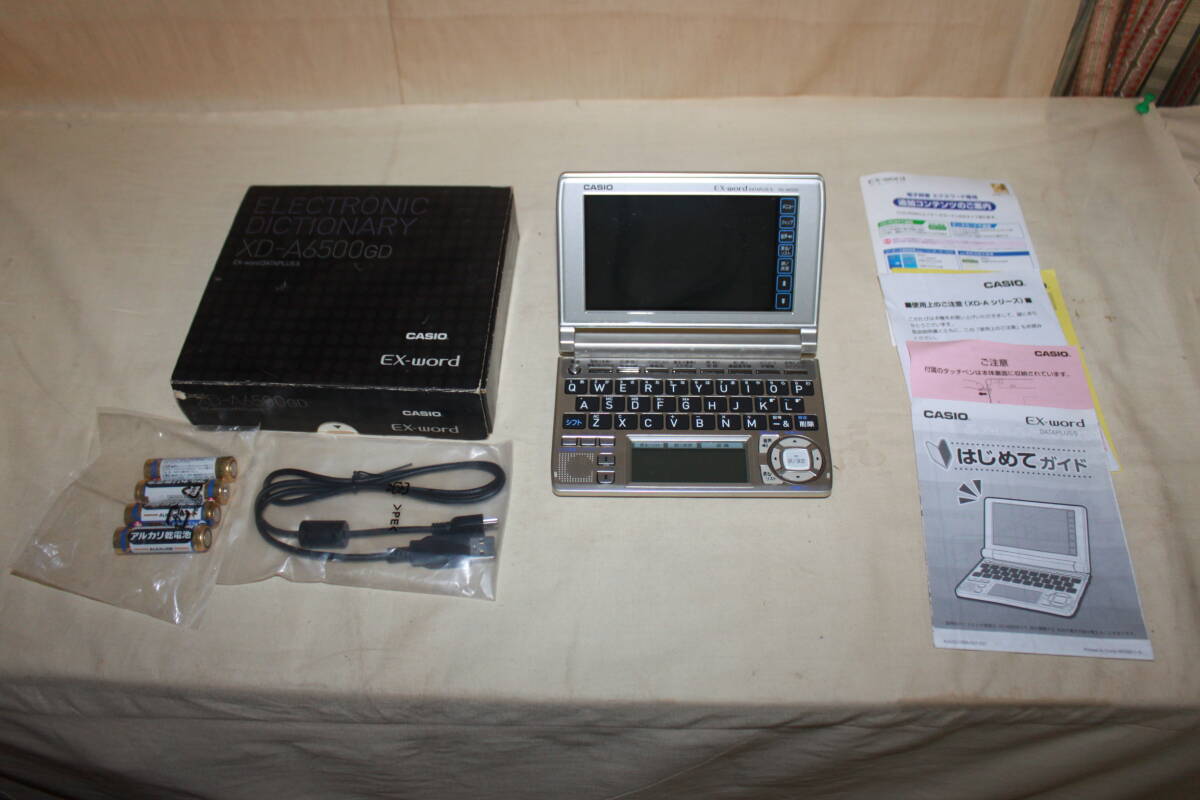 【状態】 メーカー:CASIO カシオ 品名:電子辞書 サイズ:D106.5 x W148.5 x H16.3mm (閉時、最薄部), H18.9mm (閉時、最厚部) 品番:XD-A6500GD 付属品:画像のものが全てです 状態:中古品です 箱にダメージがあります 電子辞書本体は目立ったキズ等ありません 詳しい状態につきましては画像にてご確認ください ★当方、古いものを主体として出品させて頂いております。 点検は致しておりますが汚れや傷等の見落としがある場合がございます。 ご了承の上よろしくお願い致します。 ★発送詳細 ・佐川急便の予定です。 ★支払方法 ・!かんたん決済 他にも色々出品しています。よろしかったらご覧になってください。