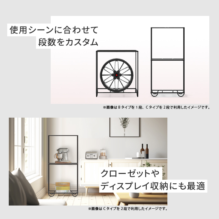 | 詳細 | RIVAIオリジナル組立式のホイールラック。 展示会などのイベント会場用から商品を並べる店舗用、ガレージ用からお部屋のインテリア用やクローゼット用など様々なシーンでの利用に合わせてタイプをお選びいただけます。 <ストロングポイント> ・最大8本のホイール展示!1マスに2本の展示を実現 ※ ・店舗などの限られたスペースに最適なスリム設計 ・あらゆる使用シーンに適用する、自由な段数設定が可能 ・展示品が際立つ半艶のサテンブラック ・持ち運びしやすく、保管しやすい組立式 ・使わない時にしまえる、厚め生地の専用パッケージ |