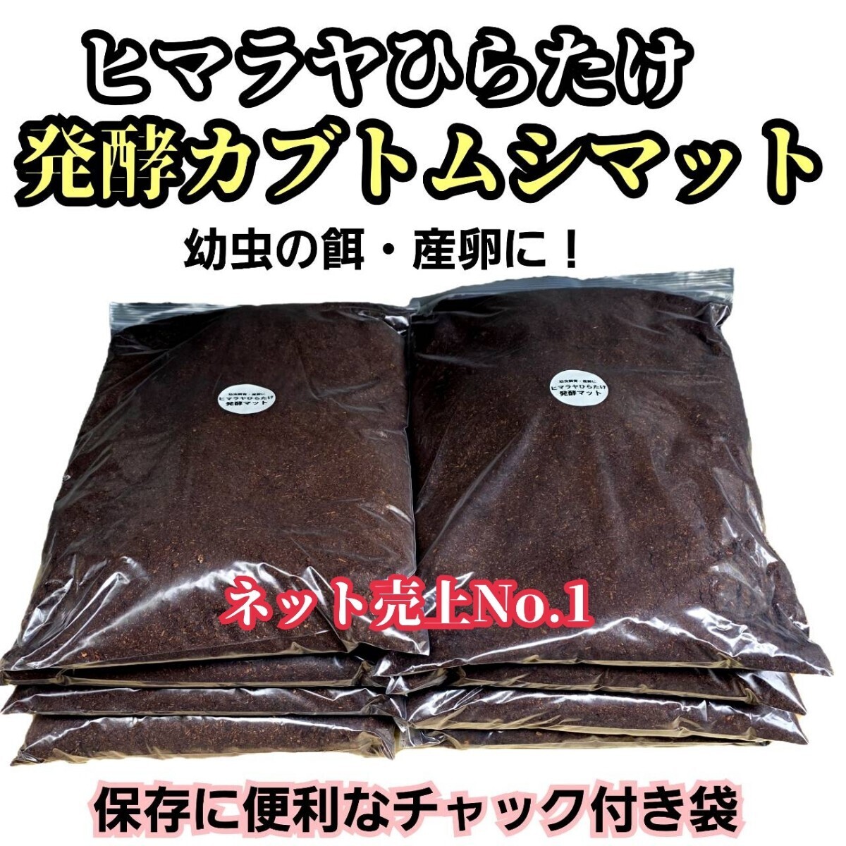 当社の「発酵マット」は新品の菌床だけを管理された室内でじっくり発酵させてますので雑虫混入が100%ありませんので飼育中に雑虫やコバエがわきません! ※外部からコバエが混入しないようにフィルター付きのケースがお薦めです。 ギネスサイズがどんどん羽化してお陰さまでリピート率は90%以上と人気のマットになってます。 カブトムシ、クワガタが最も好むヒマラヤひらたけ菌床は高価で入手困難となってます。 ヒマラヤひらたけ発酵マットは国産のカブトムシ幼虫の餌、産卵用マットにお薦めです。 国産カブトムシは88ミリの羽化実績が多数あります。 当然、ヘラクレスなどの外国産やミヤマなどの発酵マット系クワガタにも使えます。 とにかく幼虫の食い付きがよくモリモリ食べます。 大型の成虫にするポイントは幼虫期間にどれだけたくさんの質の良い餌を食べさせることができるかです。 高カロリーで絶妙なバランスの栄養添加剤配合の「ヒマラヤひらたけ発酵マット」は国産幼虫の餌の中では最高峰です。 国産カブトムシのブリーダー様から好評でリピート注文をたくさん頂いています。 全国の昆虫ショップやカブトムシ、クワガタ専門店からも注目されお陰様で定期的に大量の注文を頂いています。 産卵マットに使うとメスが大量に卵を産みます。