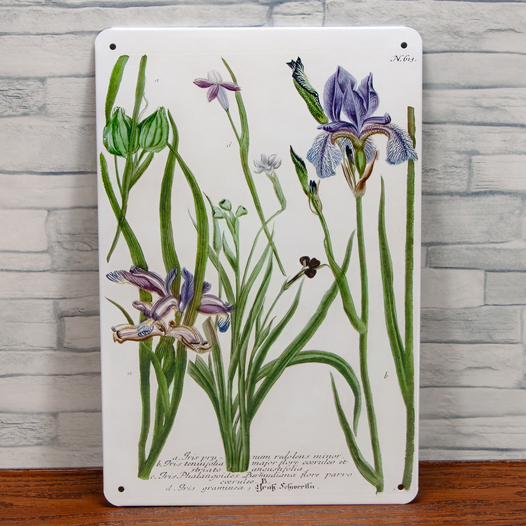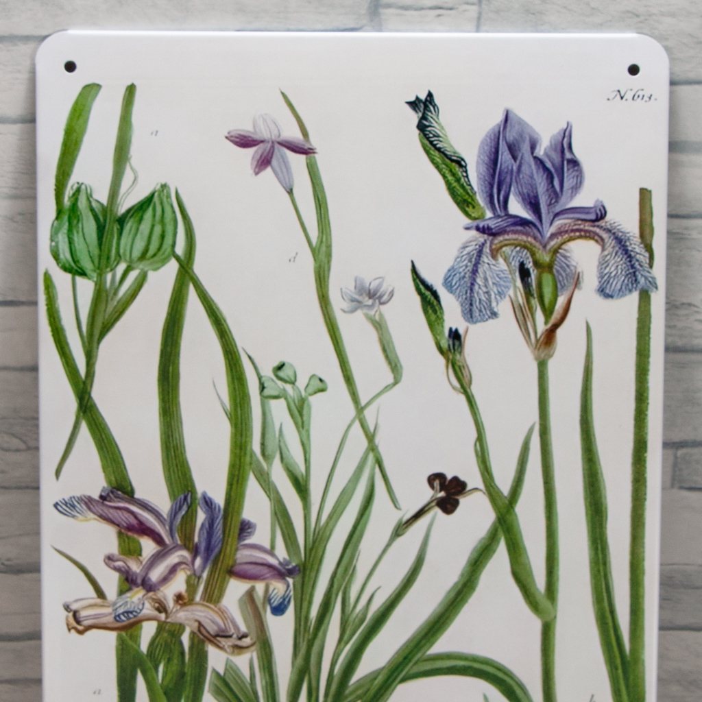紫の花のブリキ看板 ボタニカル風