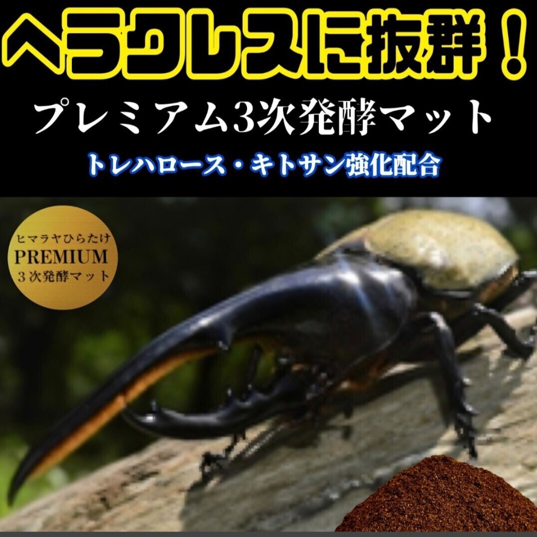 カブトムシ、クワガタが最も好むヒマラヤひらたけ菌床は高価で入手困難となってます。 プレミアム発酵マットは外国産 のカブトムシ幼虫の餌、産卵用マットにお薦めです。 【羽化実績】 ヘラクレスヘラクレス182ミリ リッキー165ミリ ネプチューン155ミリ コーカサス127ミリ マルス131ミリ 国産カブト87ミリ ヘラクレスなどの外産はもちろん国産のカブトムシもギネスサイズがでています。 他にもヘラクレス亜種、シロカブト、ゾウカブトなどでも多数大型実績あります。 ミヤマクワガタやノコギリクワガタ、ヒラタクワガタ、オオクワガタ、ニジイロクワガタなどクワガタ全般もこのマットで大きくなったとの報告をたくさん頂いています。 クワガタでは特にミヤマクワガタではギネス級が羽化しています。 とにかく幼虫の食い付きがよくモリモリ食べます。 大型の成虫にするポイントは幼虫期間にどれだけたくさんの質の良い餌を食べさせることができるかです。 高カロリーで絶妙なバランスの栄養添加剤配合の「ヒマラヤひらたけプレミアム3次発酵マット」は幼虫の餌の中では最高峰です。 特にヘラクレスなど外産ブリーダーの方から好評でリピート注文をたくさん頂いています。 全国の昆虫ショップやカブトムシ、クワガタ専門店からも注目されお陰様で定期的に大量の注文を頂いています。 産卵マットに使うとメスが大量に卵を産みます。 ヘラクレスは1頭のメスが130個以上産んだ実績あります。 国産カブトムシでは1匹のメスが90個の産卵実績。 この発酵マットの愛用者にはビークワコンテストで何度も上位入賞されてる方もいます。 カブトムシ、クワガタの飼育を長年やってきて、マットも色々と実験を繰り返してきました。 試行錯誤した結果一番大きく元気に育ったのが「ヒマラヤひらたけプレミアム発酵マット」でした。 雑菌処理も完璧にやってありますので雑虫やコバエもわきません。 【適応品種】 (カブト) ヘラクレス ・ネプチューン・ サタン・シロカブト・ゾウカブト・コーカサス・アトラス・ゴロファ・ゴホンツノなど (クワガタ) ミヤマ・ノコギリ・ヒラタ・アンテ・オオクワ・キンイロ ・ニジイロ・ツヤクワ・ホソアカ ・フタマタ・メンガタ・シカクワ・ネブト・ハナムグリ・ウガン ゴライアス・オーベルチュールなど 購入後、商品、飼育のサポートも致します。 他にもクワガタ用の未発酵菌糸マット、オオクワガタ専用カロリーマット、成虫管理に最適な針葉樹マットや、成虫飼育やディスプレイに使える、とまり木、ハイグレードプロゼリー、栄養添加剤なども出品していますので私のその他の出品もご覧下さいませ。 他にも色々出品しています。こちらをクリック ↓↓↓ クワガタ・カブト飼育用品一覧 |