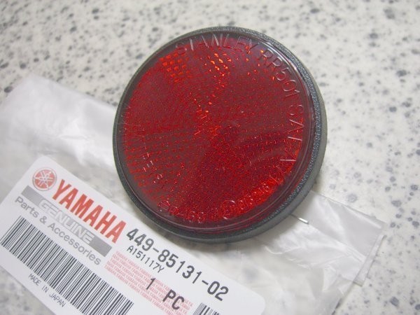 | 商品説明 | ヤマハ車に一般的に広く使われているリヤリフレクタ 1個になります。 裏面で、ネジで固定するタイプになります。 【適用車種】 参考ですので自己責任でご使用をお願いします。 ●共用車種:XVS950CUボルト/Rスペック/Cスペック/ボックス/VOX/サリアン/ベルーガ80/フェザー /FJ-09/MT-09トレーサー/FZ-09/MT-09/GT-MX/ボビィ50/チャッピィ80/マリック/XV1600ASロードスターミッド ナイト/タウニィ/XV1900CUレイダー/ベルーガ50/XV1600ロードスター/ロードスターミッドナイトスター/XV1600ATロードスター シルバラード/XV1600ロードスターリミテッドエディション/XV1700ロードスターウォーリア/XV1700ATMAロードスターミッドナイトシ ルバラード/XV1700PCミッドナイトウォーリア/XV1700ASロードスターS/ロードライナー/ロードライナーS/ロイヤルスター/ロイヤルス ターツアークラシック/ロイヤルスターブルバード/ジョグ100/ストラトライナー/XV1900ストラトライナー /XV1900ストラトライナー/XVS1300CAストライカー/T-MAX/ドラッグスター1100クラシック/Vスター1100クラシック/Vス ター1100カスタム/Vスター1100シルバラード/Vスタークラシック/Vスターカスタム/Vスターシルバラード/Vスター1100ミッドナイトカス タム/ドラッグスタークラシック/Vスター1300/XVS1300Aミッドナイトスター/V-MAX/Vスター950/650XS-1/XS650 /XS650E/XS650スペシャル/GX750/XV920ビラーゴ/Vスター650/YZF-R1/YZF-R1M/ジンガー/ドラッグスター 400/ドラッグスター400クラシック/ 2014 - 2016 BOLT 2007 - 2011 C3 1983 - ---- CA50K 1986 - ---- CA50S 1983 - ---- CV80K 1974 - ---- DT100A 1974 - ---- DT125A 1974 - ---- DT175A 1976 - ---- DT250C 1976 - ---- DT400C 1986 - 1987 FAZER 2015 - 2015 FJ09 2008 - 2009 FJR 1300A 2003 - 2005 FJR1300 2014 - 2015 FZ09 1973 - ---- GT1 1974 - ---- GT80A 1975 - ---- GT80B 1976 - ---- GT80C 1978 - ---- GT80E 1979 - ---- GT80F 1975 - ---- GT80MXB 1973 - ---- GTMX 1974 - ---- GTMXA 1976 - ---- GTMXC 1978 - ---- LB50PE 1979 - ---- LB50PF 1980 - ---- LB50PG 1977 - ---- LB80_3D 1976 - ---- LB802AC 1977 - ---- LB802AD 1978 - ---- LB802AE 1976 - ---- LB80IIHC 1980 - ---- LC50G 2001 - 2001 MIDNIGHT STAR 1982 - ---- MJ50J 1981 - 1981 MX80H 1982 - 1982 MX80J 1980 - ---- QT50 1980 - ---- QT502G 1979 - ---- QT50F 1980 - ---- QT50G 1981 - ---- QT50H 1982 - ---- QT50J 1983 - ---- QT50K 1975 - ---- RD125B 1974 - ---- RD200A 1973 - ---- RD250 1973 - ---- RD350 1984 - 1985 RIVA 50 1984 - 1987 RIVA 80 1999 - 2009 ROAD STAR 2008 - 2013 ROAD STAR S 2006 - 2007 ROADLINER 2006 - 2009 ROADLINER MIDNIGHT 2006 - 2014 ROADLINER S 1996 - 1996 ROYAL STAR 1996 - 1996 ROYAL STAR TOUR CLASSIC 1999 - 2001 ROYAL STAR BOULEVARD 1975 - ---- RS100B 1976 - ---- RS100C 1996 - ---- RT100H 1983 - ---- RX50K 1984 - ---- RX50L 1984 - ---- RZ350L 1985 - ---- RZ350N 1985 - ---- RZ350NC 1985 - ---- RZ350NCII 1978 - ---- SR500E 1979 - ---- SR500F 1980 - ---- SR500G 1981 - ---- SR500H 2014 - 2014 STRATOLINE S 2006 - 2009 STRATOLINER 2006 - 2008 STRATOLINER MIDNIGHT 2006 - 2013 STRATOLINER S 2010 - 2014 STRATOLINER DELUXE 2011 - 2015 STRYKER 2009 - 2015 TMAX 1985 - ---- TRI-MOTO 1973 - ---- TX500 1973 - ---- TX650 1973 - ---- TX750 2004 - 2009 V STAR 1100 CLASSIC 2004 - 2009 V STAR 1100 CUSTOM 2004 - 2009 V STAR 1100 SILVERADO 2004 - 2008 V STAR CLASSIC 2005 - 2005 V STAR 1100 CUSTOM WITH FLAMES 2005 - 2009 V STAR 1100 MIDNIGHT CUSTOM 2006 - 2010 V STAR 650 CLASSIC 2006 - 2007 V STAR 650 SILVERADO CA 2007 - 2015 V STAR 1300 2009 - 2009 V MAX 2010 - 2015 VMAX 1998 - 2005 V-STAR CLASSIC 1998 - 2003 V-STAR CUSTOM 1999 - 1999 V-STAR 1100 2000 - 2003 V-STAR 1100 CLASSIC 1970 - 1970 XS1 1971 - ---- XS1B 1972 - ---- XS2 1975 - ---- XS500B 1975 - ---- XS650B 1980 - ---- XS650G 1980 - ---- XS650SG 1978 - ---- XS750SE 1982 - ---- XT125J 1982 - ---- XT200J 2000 - 2000 XT350 1976 - ---- XT500C 1977 - ---- XT500D 1978 - ---- XT500E 1982 - ---- XT550 2002 - ---- XV17PCP 1981 - ---- XV920RH 1982 - ---- XV920RJ 2014 - ---- XVS13CECBY 2014 - ---- XVS65ES 1997 - 1997 XVZ13AJ 1984 - 1987 YAMAHOPPER 2009 - 2015 YZFR1 1999 - ---- YZINGER 1994 - 1998 Y-ZINGER |